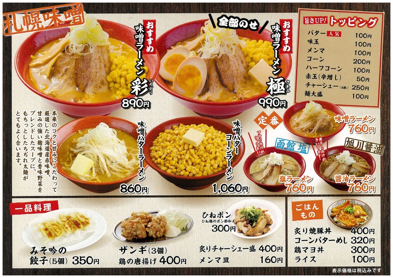 | 店名 | 札幌ラーメンみそ吟 |